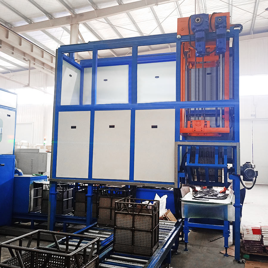 The equipment has automatic loading and unloading and corner system, ultrasonic cleaning system, automatic throwing, automatic overflow and oil separation device, spray system, automatic high-pressure water cutting system, and automatic drying system. The robot automatic conveying system adopts high-precision linear guide rails and high-precision position detection sensors, and the robot can accurately grasp and place the workpiece. The automatic feeding and discharging and automatic heating system completely realizes unmanned intervention and automatic operation, which greatly reduces the labor intensity of workers. The advanced mist treatment system can condense and return the mist generated during cleaning, and the air will be discharged after being filtered and adsorbed by activated carbon.