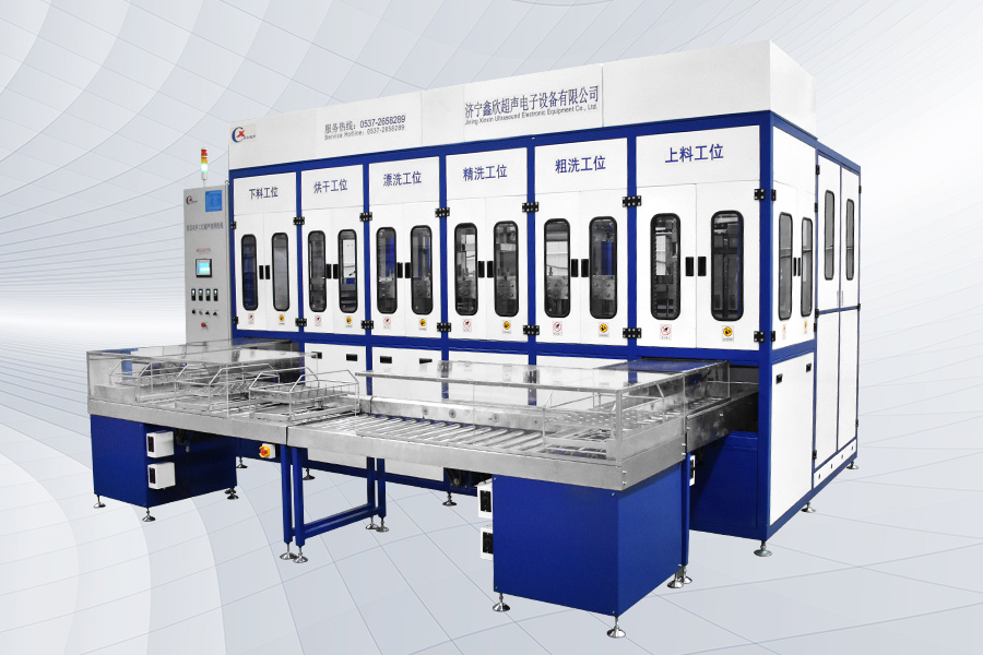 This equipment is suitable for cleaning automobile turbine compressor shell and turbine shaft. The equipment is equipped with automatic conveying device, ultrasonic cleaning, high pressure spray cleaning, wind cutting and hot air drying system, and the cleanliness and dryness of the cleaned workpiece are high.