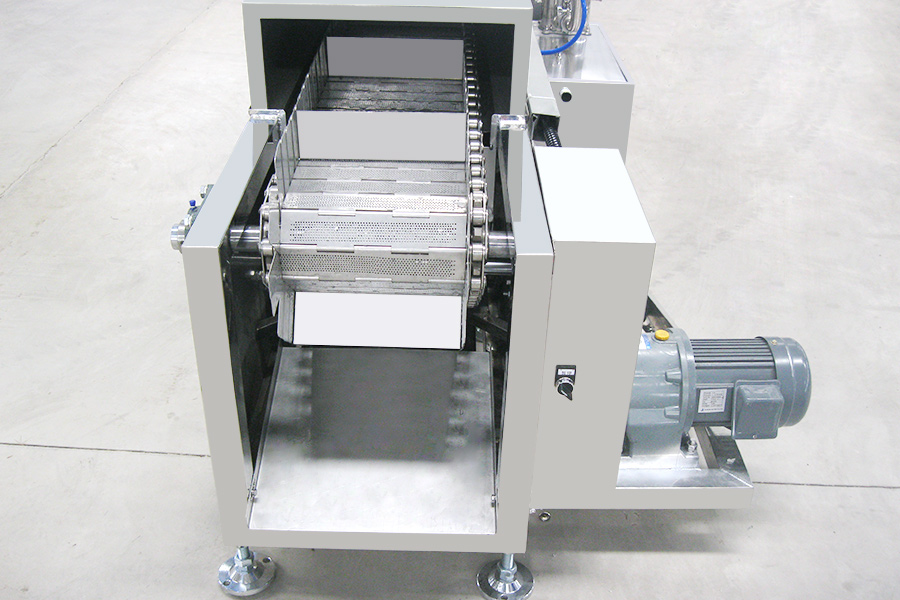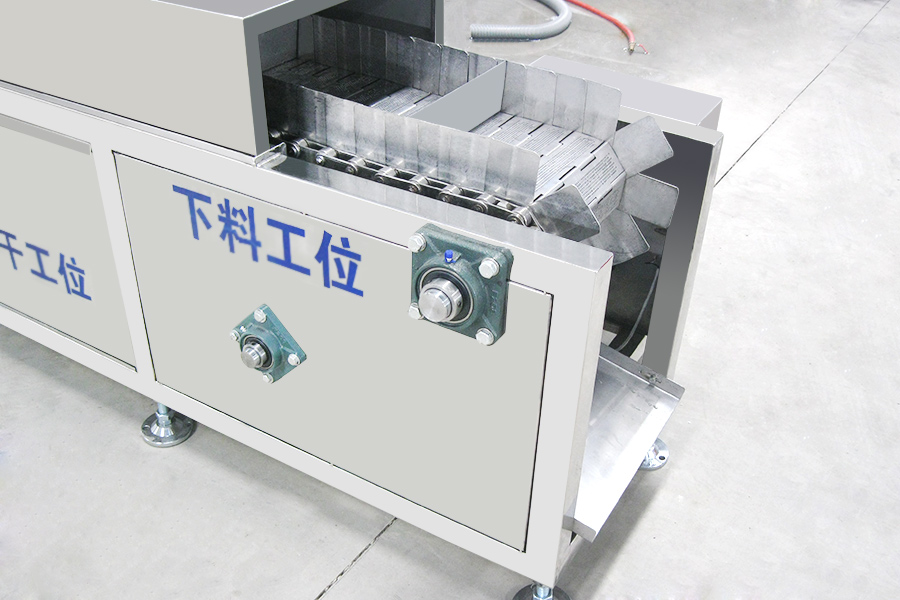 該設備有上下料網帶、超聲波清洗工位、噴淋漂洗工位、高壓風切、熱風烘干工位、溫控水加熱系統、風機、溫控空氣加熱系統、移動式風刀、PLC+觸摸屏控制系統、管路系統及智能電器控制系統等組成。自動進排液和自動加溫系統完全實現了無人干預,自動運行,很大程度上降低了工人的勞動強度。先進的霧氣處理系統可以將清洗時產生的霧氣冷凝回流,空氣經過濾和活性炭吸附后排出。